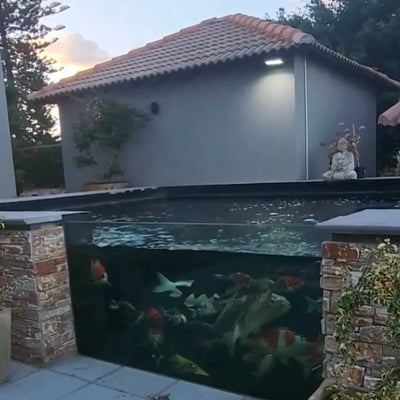 Bring a bold, contemporary edge to your garden with our bespoke pond glass viewing windows. Designed for strength, clarity, and style, these durable panels create stunning underwater views, transforming koi ponds into breathtaking focal points.